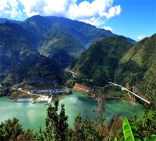 2、瀾滄江百里長(zhǎng)湖 瀾滄江流經(jīng)云縣全程176.5km。至80年代以來(lái),國(guó)家先后在此段江面上建起了百萬(wàn)千瓦級(jí)的漫灣電站和大朝山電站;兩座電站大壩橫空出世,沖天而起,形成了兩個(gè)如梯相連、沉靜如畫的高峽平湖和百里長(zhǎng)湖,即漫灣庫(kù)區(qū)的高峽平湖和漫灣電站到大朝山電站全長(zhǎng)91.3km的百里長(zhǎng)湖。由于兩大壩對(duì)水位的共同抬升作用,使原來(lái)的青山變矮了,形成無(wú)數(shù)個(gè)大大小小的湖灣半島,湖面也由此而迂回曲折,形狀奇特多變。放眼湖上,湖水碧藍(lán)浩淼,青山簇簇綿延,山水相映,水天一色。