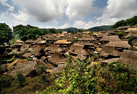8、翁丁佤族原始群居村落 翁丁的“翁”為水,“丁”為接,翁丁,意為連接之水。該地有幾條小河相互連接,以此得名。翁丁原始村落距縣城30公里,屬勐角鄉(xiāng)管轄范圍,共有98戶人家,400多人。因?yàn)樵摯宓侥壳盀橹惯€保留著許多佤家的傳統(tǒng)習(xí)俗和信仰而稱之為原始村落。周圍自然景觀優(yōu)美,民族風(fēng)情濃郁,翁丁寨保留了原始佤族民居建筑風(fēng)格和原始佤族風(fēng)土人情,是迄今為止保存最為完好的原始群居村落,是臨滄人文風(fēng)情旅游的必游景點(diǎn)。
