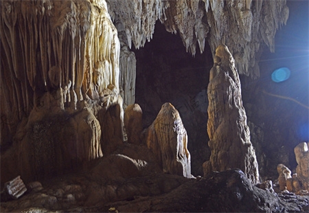 走入廳中,石柱有的象阿佤少女,有的象巨型靈芝,也有的象彌勒端坐,形象逼真,栩栩如生;地上石球、石花晶瑩碧透,令人難以置信;塔林廳位于支洞300米處,廳中有數(shù)十支石筍、石柱,高約8—15米,其中有一石柱高約20米,根粗1.6米,頂天立地,石筍上小下大,其上石花遍布,若一座座石塔,潔白晶瑩,令人留戀往返。塔林廳就是龍王子的休息廳的,左洞有條地下河,是他嬉水玩耍的地方,因?yàn)檎{(diào)皮,他總愛(ài)撿各式各樣的石頭到這里,慢慢的,這石頭就堆積成這樣,形成了一道美麗的景觀。