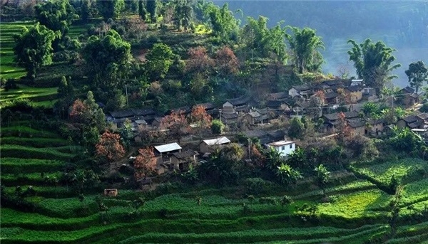 層層梯田中點(diǎn)綴著一個(gè)個(gè)村落,而村落前后和山地田間那怎么數(shù)也數(shù)不清的柿子樹,把這里映襯得像一幅幅油畫。柿子紅透山洼,菜花黃遍村落,麥苗碧浪翻滾……各種不同顏色,不同景物,組成了石頭寨獨(dú)有的風(fēng)景。