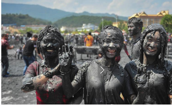 摸你黑狂歡節(jié)是自2004年以來滄源縣委、縣政府著力打造的一個大型旅游文化節(jié)慶活動,于每年的5月1日到4日在美麗的滄源縣城舉行。圖為把黑泥涂滿全身的姑娘們。
