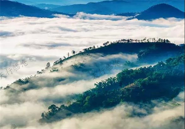 日出前,云海就像一位身姿婀娜的少女躺在山下,紋絲不動(dòng),靜如一汪清澈的湖水,倒是周圍的霧氣開始升騰;太陽冉冉升起,它開始慢慢起伏涌動(dòng),像少女舒緩地伸展手臂,任輕風(fēng)舞弄著長(zhǎng)裙,與四處彌漫的霧氣渾然一體,當(dāng)?shù)谝豢|陽光升起,照亮了朝陽一側(cè)的山坡,云海像鋪上了一層金黃色,陽光偶爾從縫隙中穿透,便直指到了霧氣森林里面。隨著太陽升高,云海變得絢麗迷人,翻騰的云海一下子失去了少女恬靜輕柔的美,猶如萬馬奔騰,海浪滔滔,前簇后擁,而這時(shí)霧氣也消散殆盡了,周圍干凈得透明,山勢(shì)延伸開來,如同一座半島插入云海中,還有一些峰尖刺破云層,突兀矗立于蒼穹,像春筍出土,一個(gè)個(gè)小山帽游離于云海半截的山腰,蕩漾于云海波濤之中;至中午便騰空而起,化為云絮了。它們像盈盈飛起的仙女,飄過山腰、飄離山頂,升上高空與白云渾然一體,在天地之間構(gòu)成了一幅綺麗無比的天然畫卷。在佤山,一年四季你都可以觀賞到宛若仙境、如夢(mèng)如幻的云海。尤其是在秋冬兩季,佤山云海最為壯觀。
