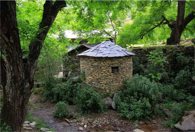 一路上,石板做屋頂?shù)姆课蓦S處可見,同行的小伙伴開始好奇:“石頭竟然可以做屋頂?太神奇了?!比欢鴮τ谖襾碚f,這一切卻司空見慣。我笑著說:到了古墨你會更驚訝的!古墨全部的房屋,均用石材堆砌,連房頂?shù)耐撸加纱笃氖邃伷龆?。院子里也盡是石頭,石地、石桌、石凳、石圍墻,自感進(jìn)入了一個石頭的世界——“石城”。這里石頭隨處可見,色呈青灰,質(zhì)堅,石頭圓潤光亮,干凈爽潔,取來即用,無須過多打磨。就連三四個世紀(jì)以前已被棄用的石磨,也在這里保存完好。