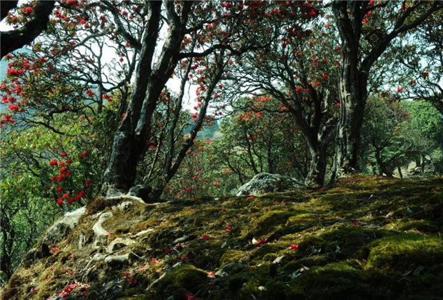 最令人嘆絕的是,漫山開遍的萬(wàn)畝連片杜鵑林。每年2月中旬到5月中下旬山花爛漫之時(shí),置身于花海中,沁人心脾,樹上開滿鮮花,下面落花鋪滿地,人走上去松松軟軟的,如踩在很厚的鮮花地毯上,“踏花坡”也因此而得名,并成為一大旅游亮點(diǎn)。