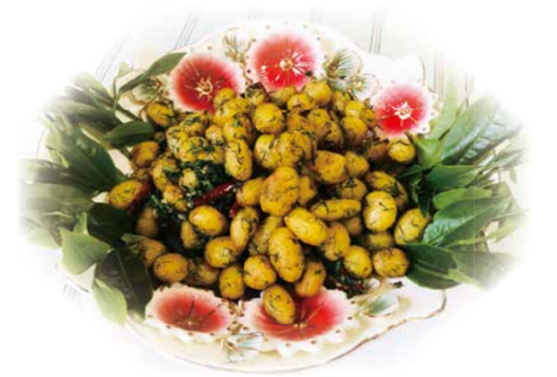 事實(shí)上,人類(lèi)吃茶的歷史也正是這樣的:咀嚼鮮葉、生煮羹飲,然后才是曬干收藏。羹飲,就是以茶入饌,制成“茶肴”?!安桦取钡某霈F(xiàn)最早見(jiàn)于《晏子春秋》:“嬰相齊景公時(shí),食脫粟之飯,茗菜而已。”中國(guó)是一個(gè)講究飲食的國(guó)度,《呂氏春秋》中即有“五谷為養(yǎng),五果為助,五畜為益,五菜為充,氣味合而服之,以補(bǔ)精益氣”。食藥同源是中國(guó)飲食文化的傳統(tǒng)。茶葉富有色、香、味、形的特點(diǎn),能調(diào)和滋味,增加色彩,又具藥理成分,因而,無(wú)論作為主料還是配料,茶和菜肴都是相得益彰的。