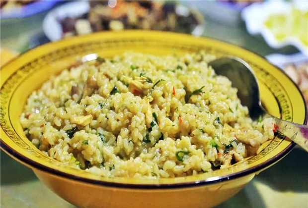 雞肉爛飯是滄源、西蒙一帶佤族待客的上等佳肴,用大米與雞同煮。雞肉爛飯不同于普通的米飯,既可當(dāng)飯亦可當(dāng)菜,一般情況下作為一道菜食用。