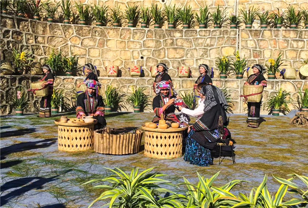 溫水、破竹、烘罐、烤茶、抖茶、洗具、雷響、苦渡、敬茶、收具,這十道工序,才算是正宗的俐侎人竹筒雷響茶制作茶藝展示。