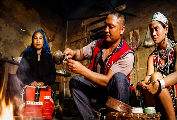 古時,俐侎人多數(shù)生活在人煙稀少,野獸出沒頻繁的深山里,族長為了保護族人的安全,便想了一個辦法,就是在烤茶的時候不斷的用棍子敲打竹筒,一方面可以起到抖茶的作用,另一方面竹筒發(fā)出清脆的敲打聲可以使野獸不敢靠近人群。這樣長期延續(xù)下來的習慣就形成了一種俐侎人家特有的邀請朋友喝茶的信號,只要聽到敲打竹筒的聲音,就知道是誰家在打茶了。這就是俐侎人竹筒雷響茶,其制作一共有8道工序:①溫水②破竹③打茶④洗具⑤雷響⑥苦渡⑦敬茶⑧收具。泡制時以當?shù)氐囊环N香竹制成的竹筒為烤茶的器具,茶葉采自云霧繚繞的俐侎山寨的大葉種茶,內(nèi)含氨基酸、維生素等多種對人體有益的物質(zhì),加入雪山清泉沖泡,滋味純正、清腦提神,能讓人產(chǎn)生無限的遐思。
