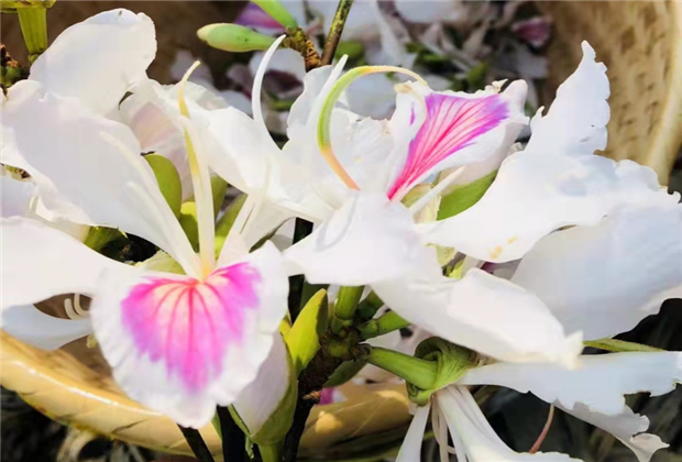 白花,永德、鎮(zhèn)康一帶又叫白鷺花。大部分孩子都有跟大人一起上山采摘白花的經(jīng)歷,摘著嫩脆的花朵,聞著花香,撿拾花瓣,和大人談天說地,轉(zhuǎn)眼間,一碗香氣撲鼻的白花豆米湯就被端上了桌,由于各家主廚的秘方不同,白花的滋味也隨之千變?nèi)f化。