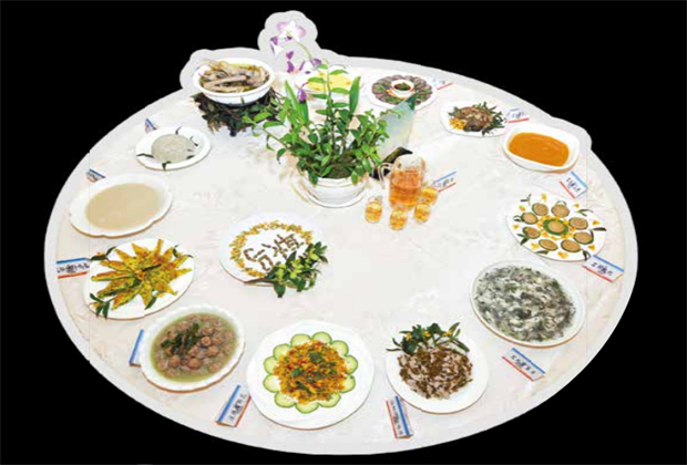 傣味自成體系,很早以來(lái)就是滇菜中最惹人注目的一支。傣族很開放,善于汲取他人之長(zhǎng),博采眾家,融會(huì)貫通,自成一體?!八峁S肉、雞、魚”“酸扒菜” “香茅草雞”“咖喱土豆”“撒撇”是其中代表。菜肴的口味有酸、辣、甜、苦、生五大特點(diǎn),傣家人因居住地氣候炎熱,需要提升食欲,所以善烹調(diào)酸菜。辣菜主要是加入亞熱帶特產(chǎn)的其辣無(wú)比的“涮涮辣”“小米辣”及胡椒而制,一般煮菜的蘸水和烤制的菜都是辣的;甜菜如“炸香蕉”“菠蘿飯”等,主要是用熱帶水果烹制,營(yíng)養(yǎng)豐富;生菜主要是涼菜,衛(wèi)生而口感好,也是亞熱帶的特色。