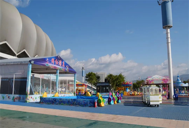 在這里家長和孩子們都能找到屬于自己的快樂。旋轉(zhuǎn)木馬、升降飛機、水果飛椅、時空穿梭、網(wǎng)紅大蹦床......孩子沉浸在仿佛一個大型的游樂園中樂不思蜀。還可以乘坐小火車在星光夜市漫游,看見心儀的美食立馬按上暫停鍵,下車大快朵頤一頓。