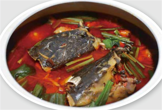 煳辣魚。做煳辣魚的原料首選鯽魚。以每條兩三兩重為最佳,把魚拾掇干凈,加鹽稍作腌漬,下鍋,七八成熟時加干辣椒段炸炒,出味后再放生姜,起鍋時加胡椒粉,如此胡椒和辣椒的味道便慢慢滲入魚肉,食之鮮、香、辣諸味混合,妙不可言。魚吃完,就湯煮上各種時鮮小菜。煳辣魚的精髓全在這“胡辣”二字,胡椒粉和干辣椒的量一定得放足。
