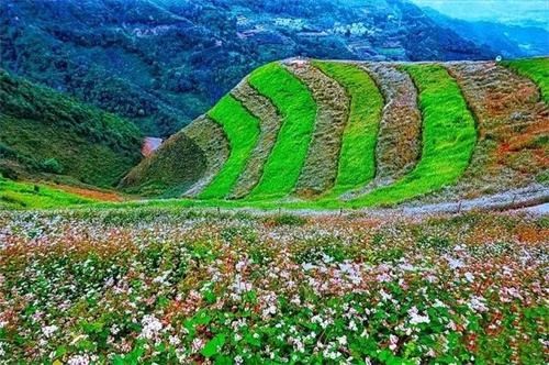去年那朵蕎麥花艷麗嬌俏的樣子在你心中留下了深刻的印象,如今魅力猶存只是不見了她們的樣子,他們?nèi)ツ牧四??你是否聽過這樣一段話“撒下苦蕎種,幼苗綠油油,嫩葉似斗笠,花開如白雪,結(jié)子沉甸甸,蕎子堆成山;老人吃了還了童,少年吃了紅潤潤,姑娘吃了雙眼明如鏡;烏發(fā)放光澤,十指嫩如筍,腰細(xì)如柳枝,容貌好似油菜花,迷醉多少男人心……”是?。?