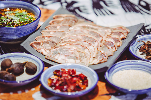酸筍魚是臨滄傣族地區(qū)普遍流行的一道菜肴,特點是酸、辣、鮮、爽。做法:將魚去鱗并除去內(nèi)臟后煎黃,再將酸筍炒熟后放入湯中,待煮沸后把魚放入,并加入蔥、姜、辣椒、花椒等佐料,即可上桌宴。