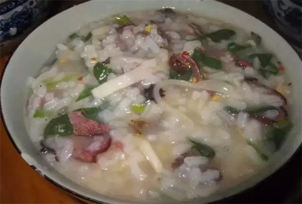 雞肉爛飯,佤族語(yǔ)稱“木艾亞”,是佤族菜譜中最著名的一道菜,也是佤族待客的上等佳肴,因其比稀粥要稠一些,由經(jīng)過(guò)加工的雞肉混合,故俗稱雞肉爛飯,紅血雞肉爛飯顧名思義,就是加上雞血的雞肉爛飯。