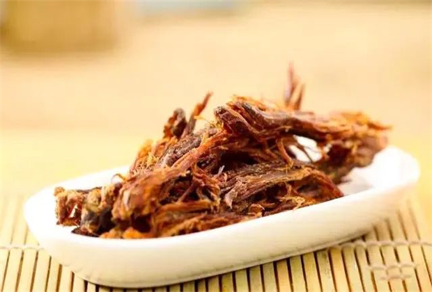 由于滄源氣候炎熱,這里的居民經(jīng)常出汗,加上傣家人以糯米為主食,因此,他們對(duì)可以促進(jìn)消化、收濕止汗的酸味食品需求量很大。干巴:要用傣族自制的牛肉干,先用溫火烤至七八成熟,接著用木錘將肉敲松、敲散,用油浸泡一會(huì)后,再重新烘烤。用這些方法制成的干巴,香脆可口。