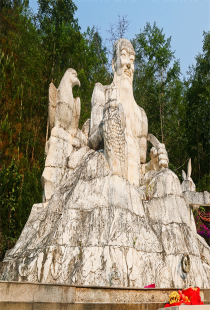 勐庫(kù)神農(nóng)祠:神農(nóng)祠位于雙江自治縣勐庫(kù)鎮(zhèn)北部邦馬大雪山萬(wàn)畝野生古茶樹(shù)群落山腳的古茶谷中心地帶,距雙江自治縣城29公里。祠內(nèi)塑有一尊采用雪花白石雕制而成的炎帝神農(nóng)塑像,高9.5米,意為“九五”之尊。整尊雕塑由“山鷹遮蔭鹿喂奶”、“神農(nóng)嘗百草”,“耒耜之利”、“神農(nóng)創(chuàng)五谷”等美好傳說(shuō)故事構(gòu)成,是雙江各族人民敬仰的神圣茶祖和醫(yī)藥鼻祖,是中外客商謁拜神農(nóng)的圣地。