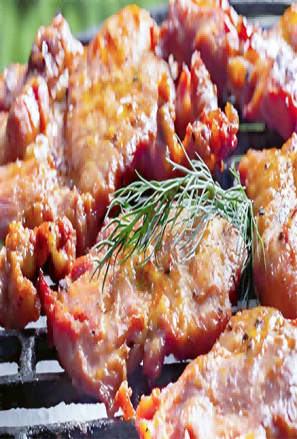 拉祜烤肉:拉祜烤肉是拉祜族的重要傳統(tǒng)美食之一。拉祜族人通常選用豬肉或牛肉,將肉切成大塊,配以鹽、辣椒、花椒等調(diào)料腌制,然后用竹簽穿好,在炭火上烤制??救馔馄に执?,內(nèi)里鮮嫩,香氣撲鼻,味道鮮美。