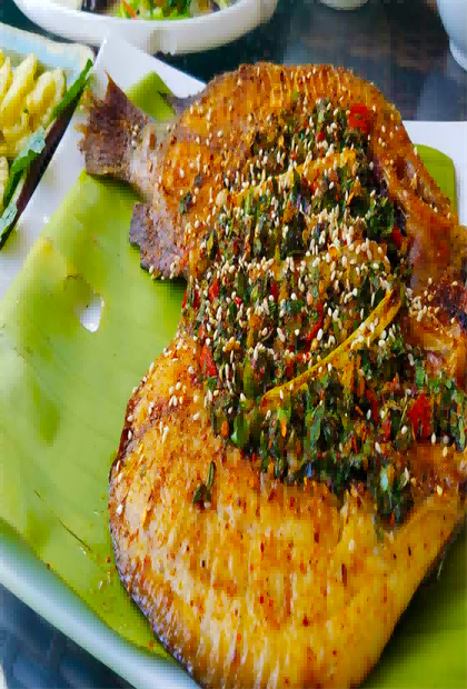 傣味烤魚(yú):傣味烤魚(yú)是傣族飲食文化中的經(jīng)典美食之一。通常選用新鮮的鯉魚(yú)或草魚(yú),經(jīng)過(guò)腌制后,用竹簽穿好,在炭火上慢慢烤熟。腌料通常包括香茅、蒜蓉、辣椒和檸檬草等,烤魚(yú)外皮酥脆,肉質(zhì)鮮嫩,香味濃郁。