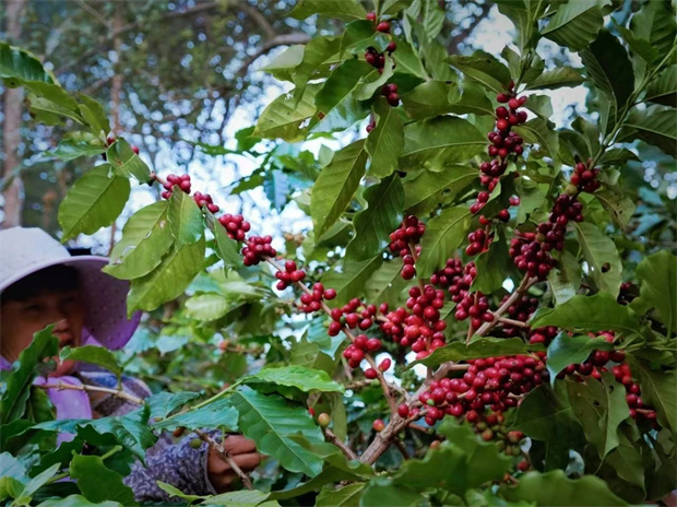 農(nóng)人的草帽在咖啡林間若隱若現(xiàn),像移動(dòng)的褐色蘑菇。他們用古茶樹傳授的智慧,教咖啡與核桃樹互致葉語。遮蔭網(wǎng)原