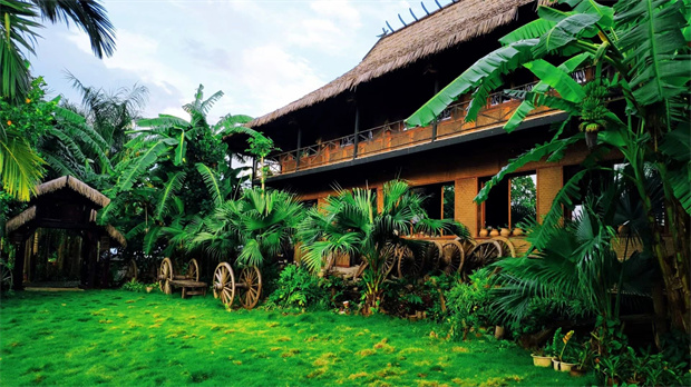 孟定南汀畫(huà)院以傣族文化為底色,把古法傳承的白棉紙演繹為現(xiàn)代油畫(huà)。在錯(cuò)落有致的傣家竹樓里,推窗見(jiàn)景、陽(yáng)臺(tái)觀