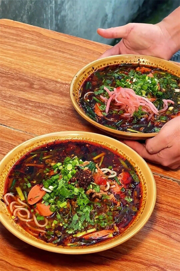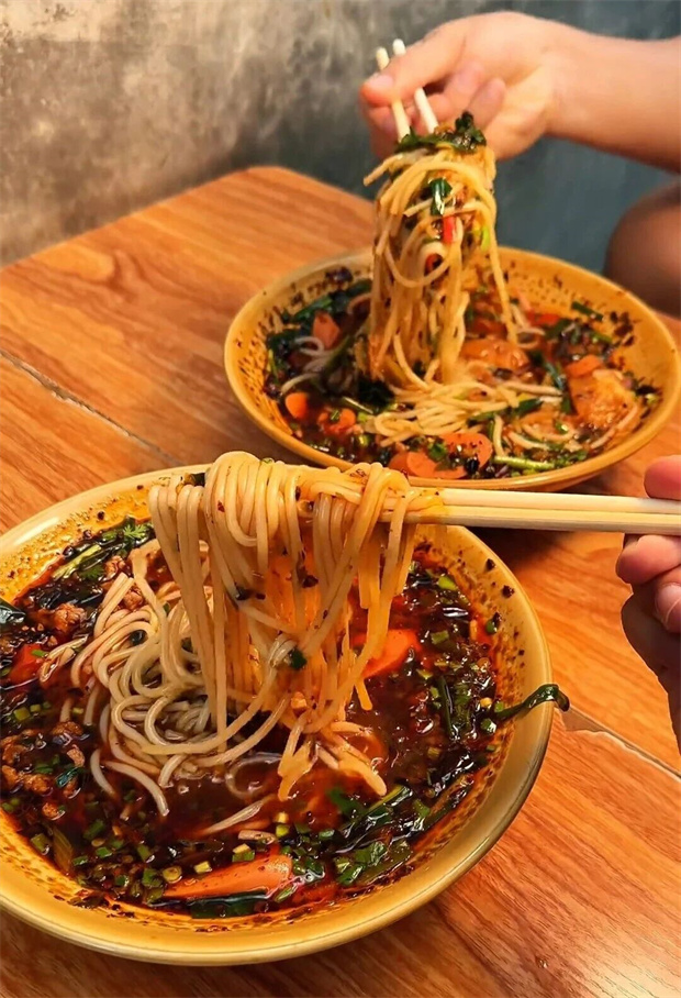 秘制肉醬、煳辣椒和新鮮時(shí)蔬,一碗專屬美味就此誕生。先喝湯,鮮香直擊味蕾,再嗦米線,滑溜中帶著韌勁。不過(guò)片刻
