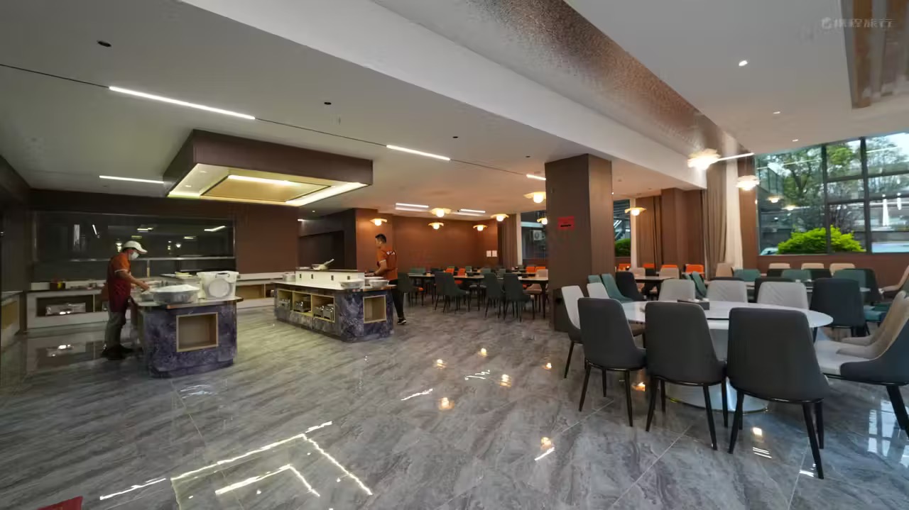 酒店一樓為自助式餐廳,可以同時(shí)容納200多人就餐,早餐品種多達(dá)18種以上;正餐標(biāo)準(zhǔn)可以根據(jù)對(duì)方需求來(lái)配備,自助餐、桌餐均可;